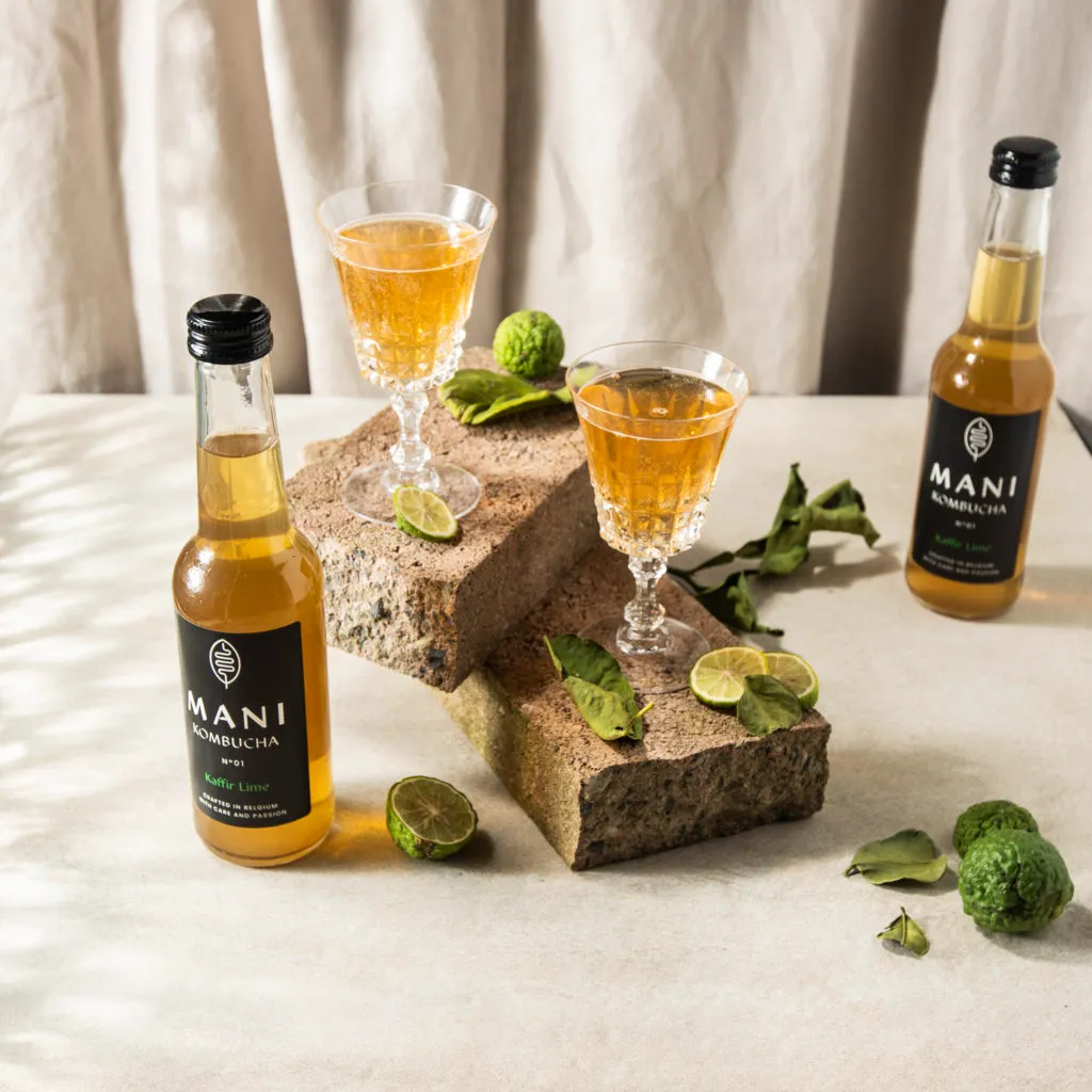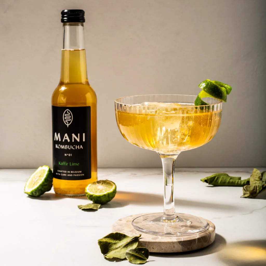 Découvrez l’essence de la fraîcheur avec la recette signature de MANI : une boisson pétillante bio, vegan et sans gluten, sublimée par la vivacité du kaffir lime.