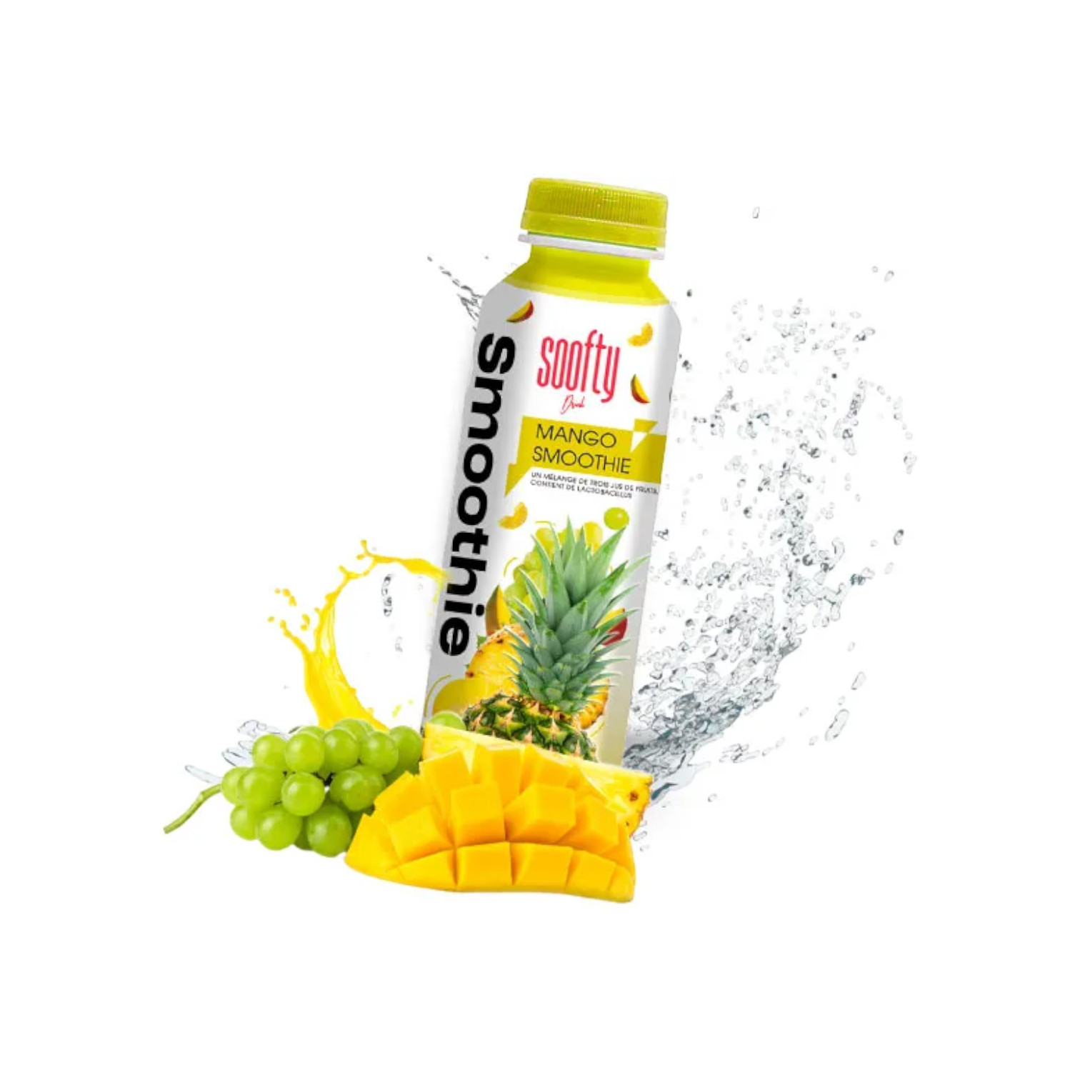 Le Smoothie by Soofty séduit par son mélange de saveurs exotiques. La mangue apporte une note douce et ronde, tandis que l’ananas offre une touche plus vive. Une recette fruitée et gourmande, conditionnée dans un format pratique pour une dégustation simple et rapide, où que vous soyez.